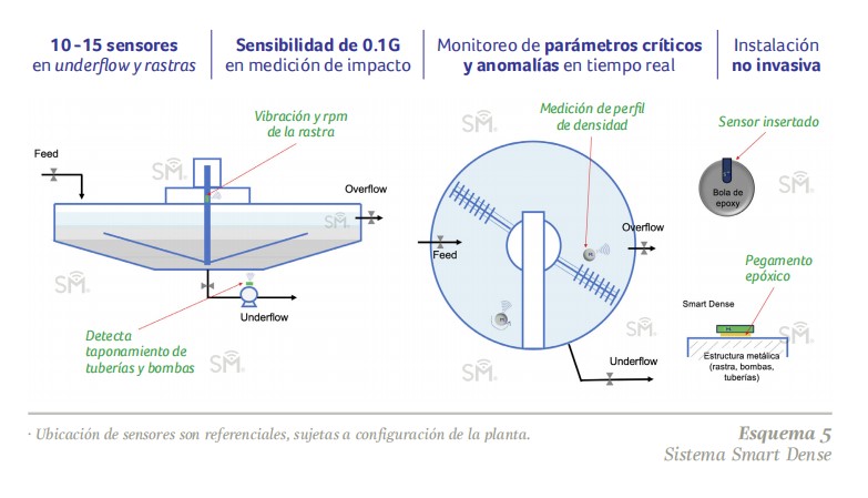 Sensores instalados en bombas de alimentación, bombas de descarga y en el eje de rastra de espesadores, mediante el registro de vibración, giro y temperatura, aseguran la disponibilidad, confiabilidad y máxima utilización de los equipos.